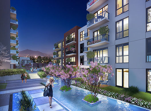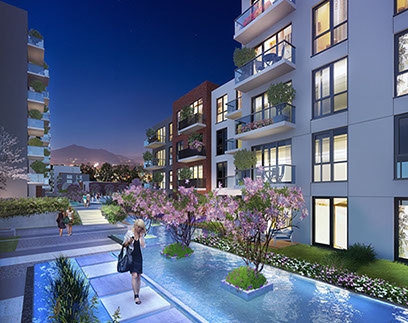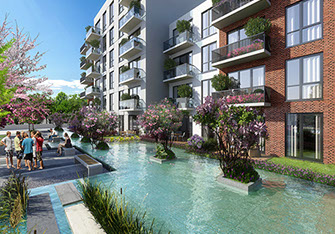 Landscape Design provides low maintenance & water efficient, minimal but attractive garden ambiance in Sancaktepe Istanbul. Various hardscape materials used to create a pattern in paving for residents to enjoy both green and hard surface areas. Long, wide and narrow water channels designed in harmony with shape of the plot and the buildings. Designed together with Land Design Factory.