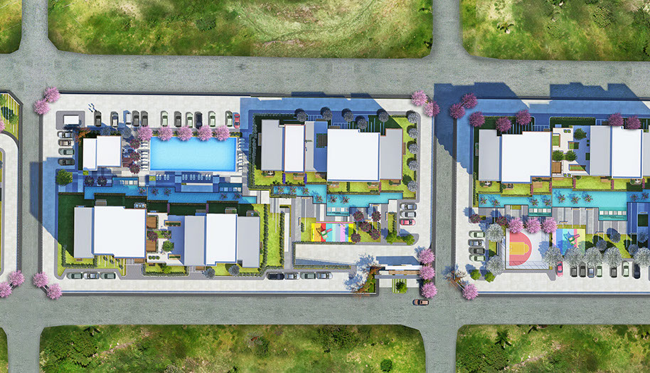 Peyzaj Tasarımı az bakım gerektiren ve az su tüketen, minimal hatları olan fakat çekici bir ambians yaratacak şekilde planlanmıştır. Alandaki yeşil alanı desteklemek üzere, çok çeşitli sert zemin malzemeleri ile döşeme desenleri tasarlanmıştır. Saha ve binaların şekline uyumlu, konut sakinlerinin hoş zaman geçirebilecekleri uzun, geniş ve dar su kanalları oluşturulmuştur. Land Design Factory ile beraber tasarlanmıştır.