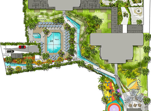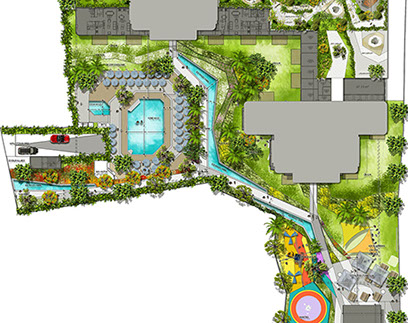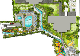 Designed with the concept - Urban park, La Marin has Lush gardens that children can run and play safely, adults can enjoy various sports, have a walk along ponds, water channels and can relax in wellness garden located at the roof top. Designed together with Land Design Factory.