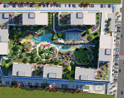 Sur Yapı Bahçeyaka is a living area that is created with inspiration from nature and will remind you of how beautiful it is to live with its floral smells every day. There are book reading, exercise and multi-purpose sports areas for you to enjoy the maximum level of clean oxygen and green from the natural structure of the project. Designed together with Land Design Factory.